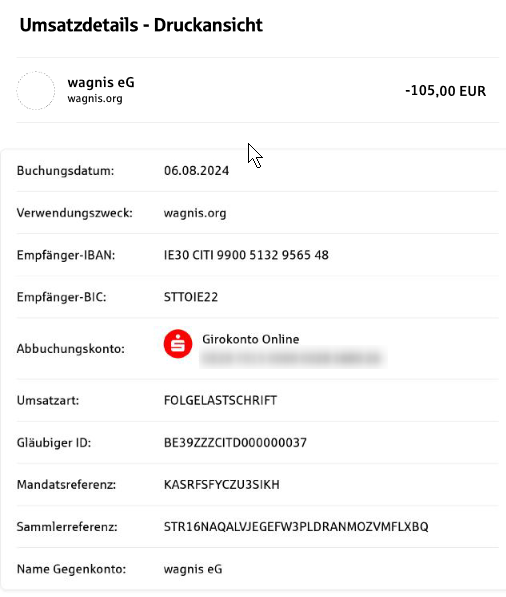 Als Mieter*in, der/die durch Klink etwas gebucht hat, möchte ich auf meinem Kontoauszug sehen, wofür das Geld abgebucht wird.